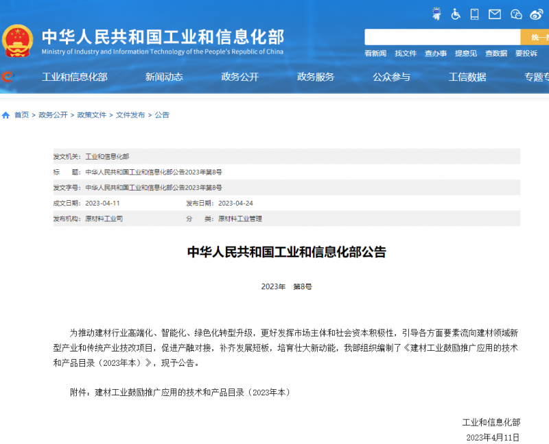 保溫復(fù)合制品、氣凝膠保溫氈、玻璃棉制品等絕熱節(jié)能材料列入《建材工業(yè)鼓勵(lì)推廣應(yīng)用的技術(shù)和產(chǎn)品目錄(2023年本)》